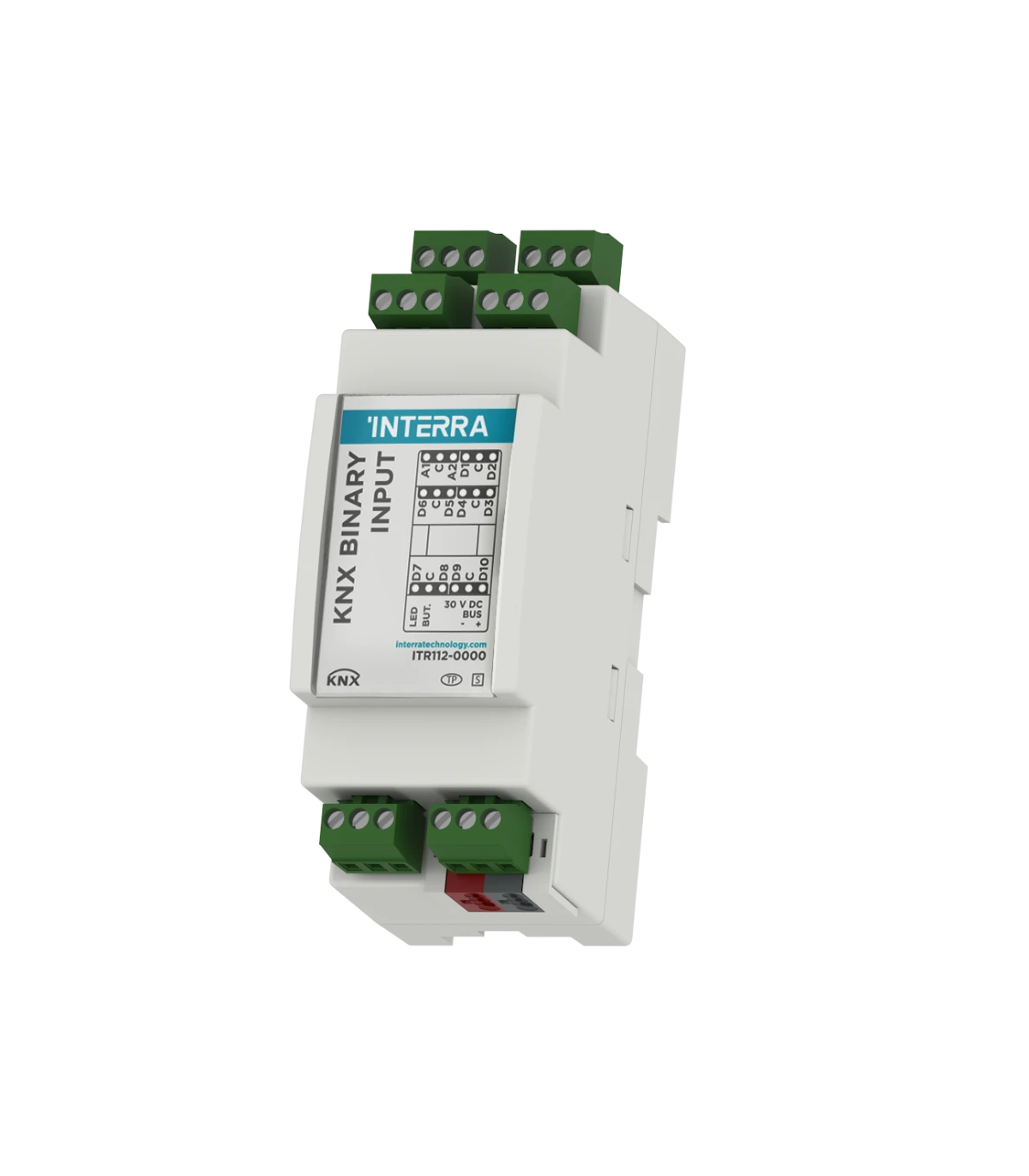 Intrarea binară Interra KNX cu 12 canale servește ca interfață pentru operarea sistemelor KNX prin butoane convenționale, întrerupătoare sau contacte mobile și pentru procesarea semnalelor binare.