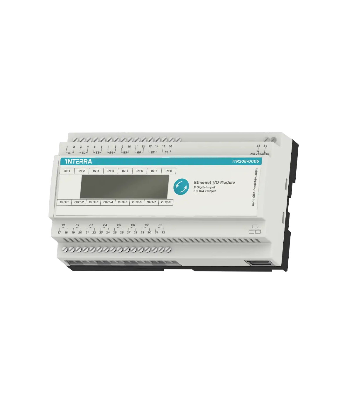 Modulul Interra Ethernet I/O este un dispozitiv versatil care permite o varietate de configurații și oferă o automatizare eficientă din punct de vedere al costurilor pentru aplicațiile smart home. Modulul Ethernet este destinat să acopere mai multe cerințe de automatizare într-o clădire inteligentă pentru operațiuni sigure și eficiente. Modulul Interra Ethernet I/O a fost dezvoltat pentru a oferi controalele dorite, în special în aplicațiile pentru rezidenți și hoteluri. Utilizarea acestor dispozitive garantează gestionarea și asigurarea eficientă a încăperilor.