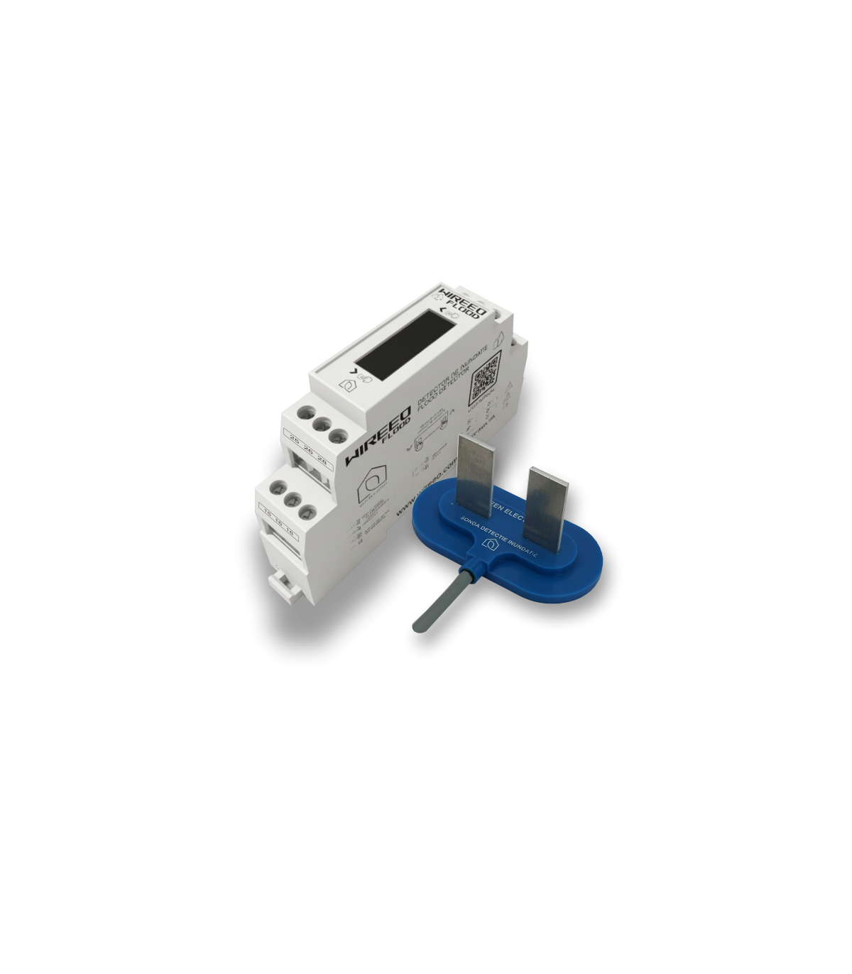 Kitul WIREEO FFD2_4S_KIT include unitatea profesională de detecție FDR-2 și sonda subpardoseală rectangulară FFD_4S, concepută pentru montaj între rosturile plăcilor ceramice. Aceasta oferă detectare rapidă a apei, o suprafață de contact optimizată și o instalare complet invizibilă. Releul FDR-2 asigură diagnostic avansat al cablului și electrozilor, sensibilitate reglabilă, timp de reacție configurabil, funcții Hold-Off și Override, precum și două relee de 6A pentru acționarea vanelor sau alarmelor. Cu suport pentru Smart Home, KNX și BMS, kitul este ideal pentru băi, dușuri, zone wellness, bucătării și camere tehnice unde detectarea timpurie a infiltrațiilor este esențială.