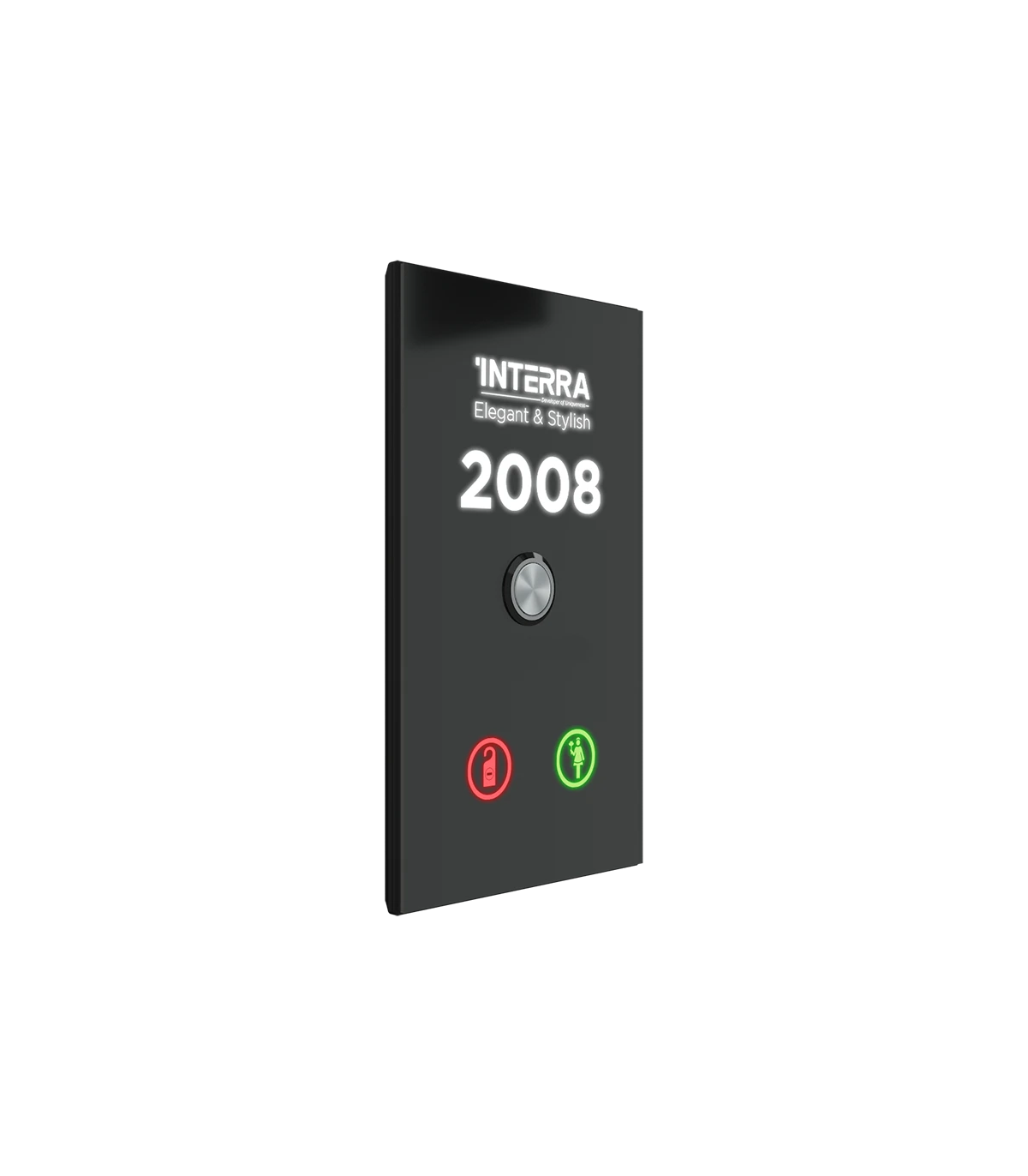Maximizează calitatea serviciului reflectând informațiile și semnalele stării camerei pe partea holului. Are alerte „Do Not Disturb – DND” și „Makeup Room –MUR” pe indicatoarele sale iluminate cu LED și un buton de sonerie pe el.
