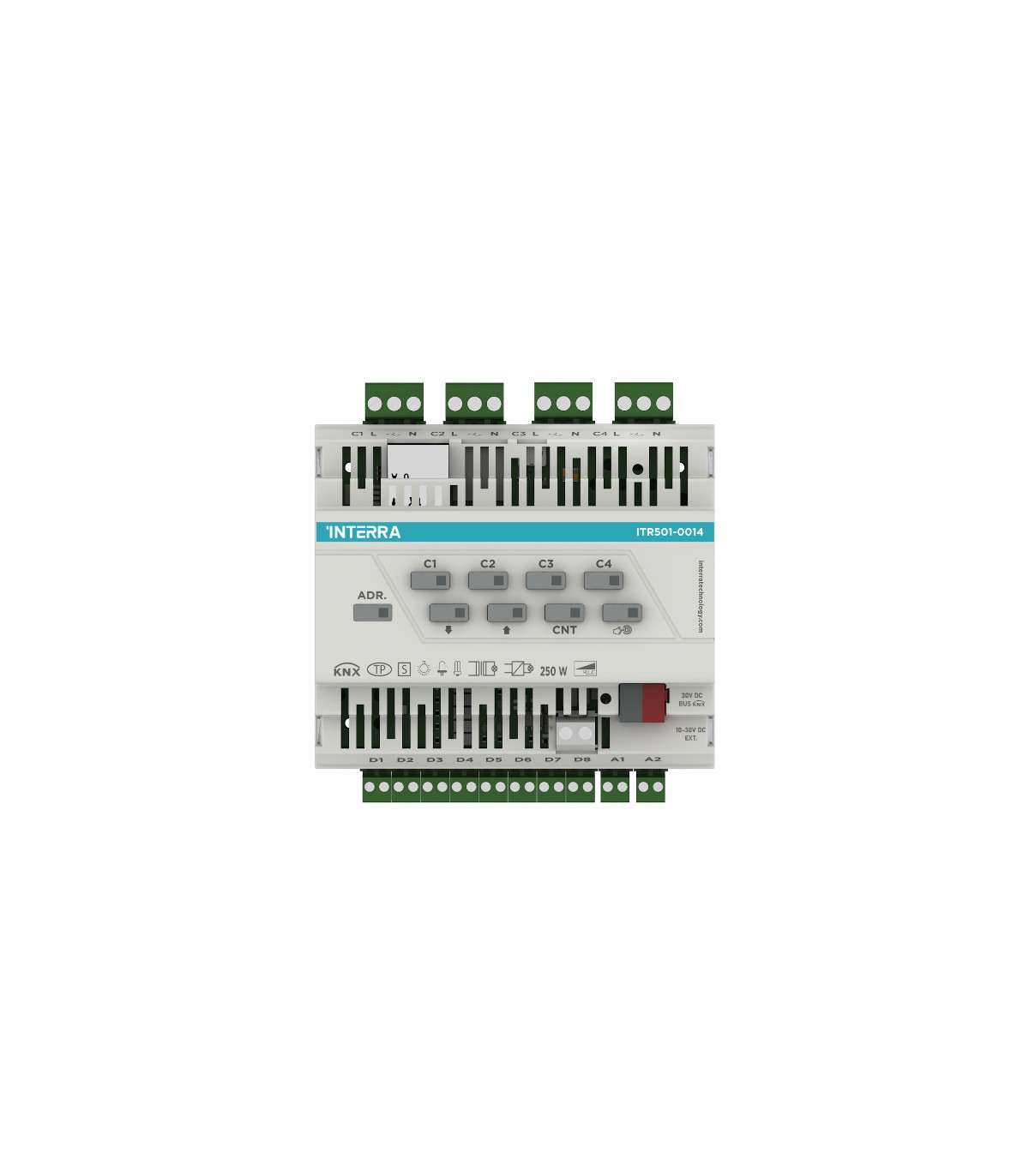 Dispozitivul de acționare universal Interra cu 4 canale cu intrări poate genera 250 W de putere de ieșire de la fiecare canal și poate conduce sarcinile R, L și C. Are protecție la temperatură, protecție la scurtcircuit, notificare de eroare cu LED-uri de canal, detectare a prezenței sarcinii și detectare a tipului de încărcare. Este posibilă programarea dispozitivului fără tensiune de alimentare de 230 V.
