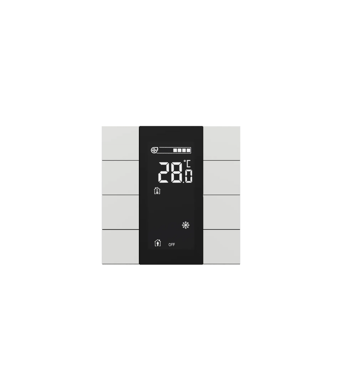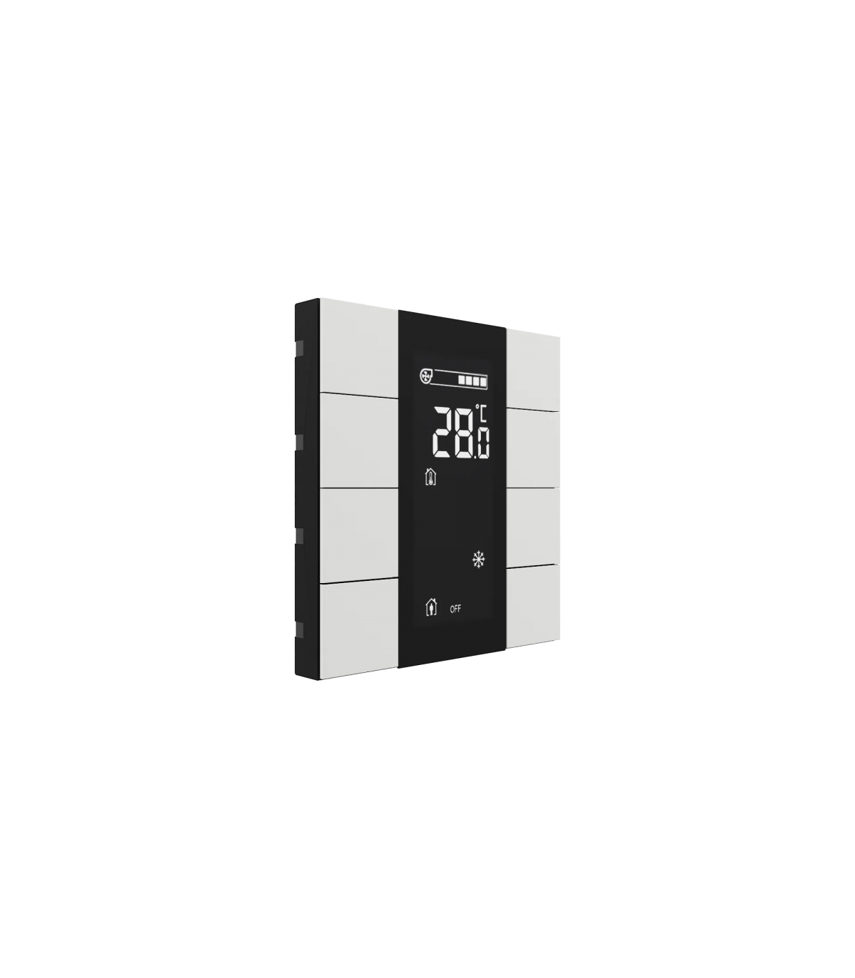 Fiecare buton este echipat cu LED-uri RGB cu intensitate luminoasa reglabila in combinatii de culori albastru/verde sau alb/rosu pentru feedback sau vizualizare, iar modelele LCD sunt echipate cu tehnologia VA-Display. Există 2 butoane ascunse cu apăsare scurtă și evenimente de apăsare lungă, situate în sus și în jos sub cadrul ecranului LCD, făcându-l un dispozitiv unic pentru a controla toate funcțiile termostatului prin butoanele LCD. Oferă o mare flexibilitate a proiectului, astfel încât alte butoane pot fi aranjate pentru alte comenzi.