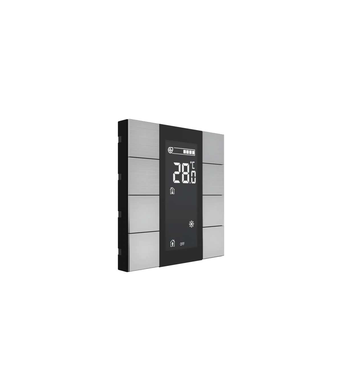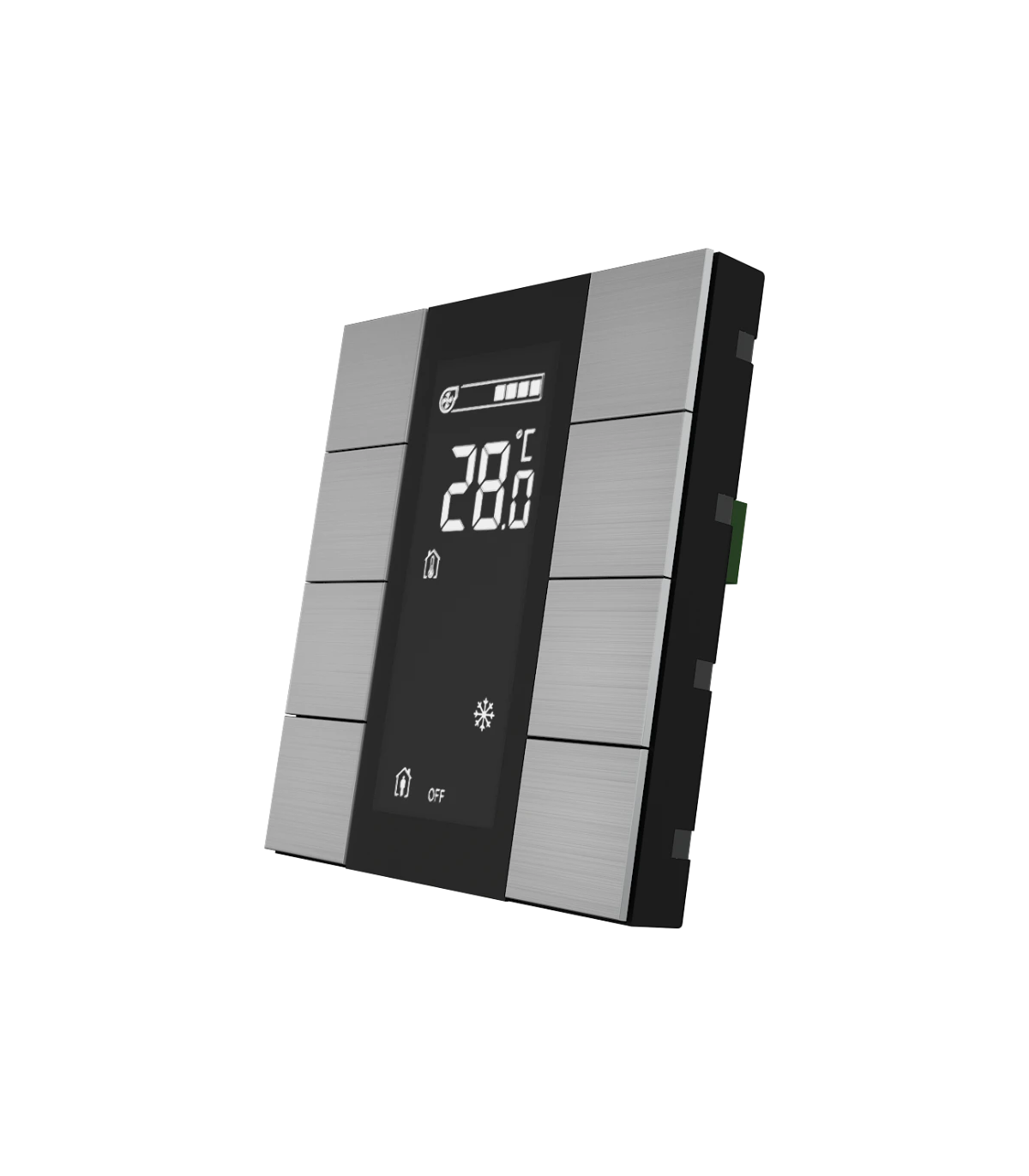 Fiecare buton este echipat cu LED-uri RGB cu intensitate luminoasa reglabila in combinatii de culori albastru/verde sau alb/rosu pentru feedback sau vizualizare, iar modelele LCD sunt echipate cu tehnologia VA-Display. Există 2 butoane ascunse cu apăsare scurtă și evenimente de apăsare lungă, situate în sus și în jos sub cadrul ecranului LCD, făcându-l un dispozitiv unic pentru a controla toate funcțiile termostatului prin butoanele LCD. Oferă o mare flexibilitate a proiectului, astfel încât alte butoane pot fi aranjate pentru alte comenzi.