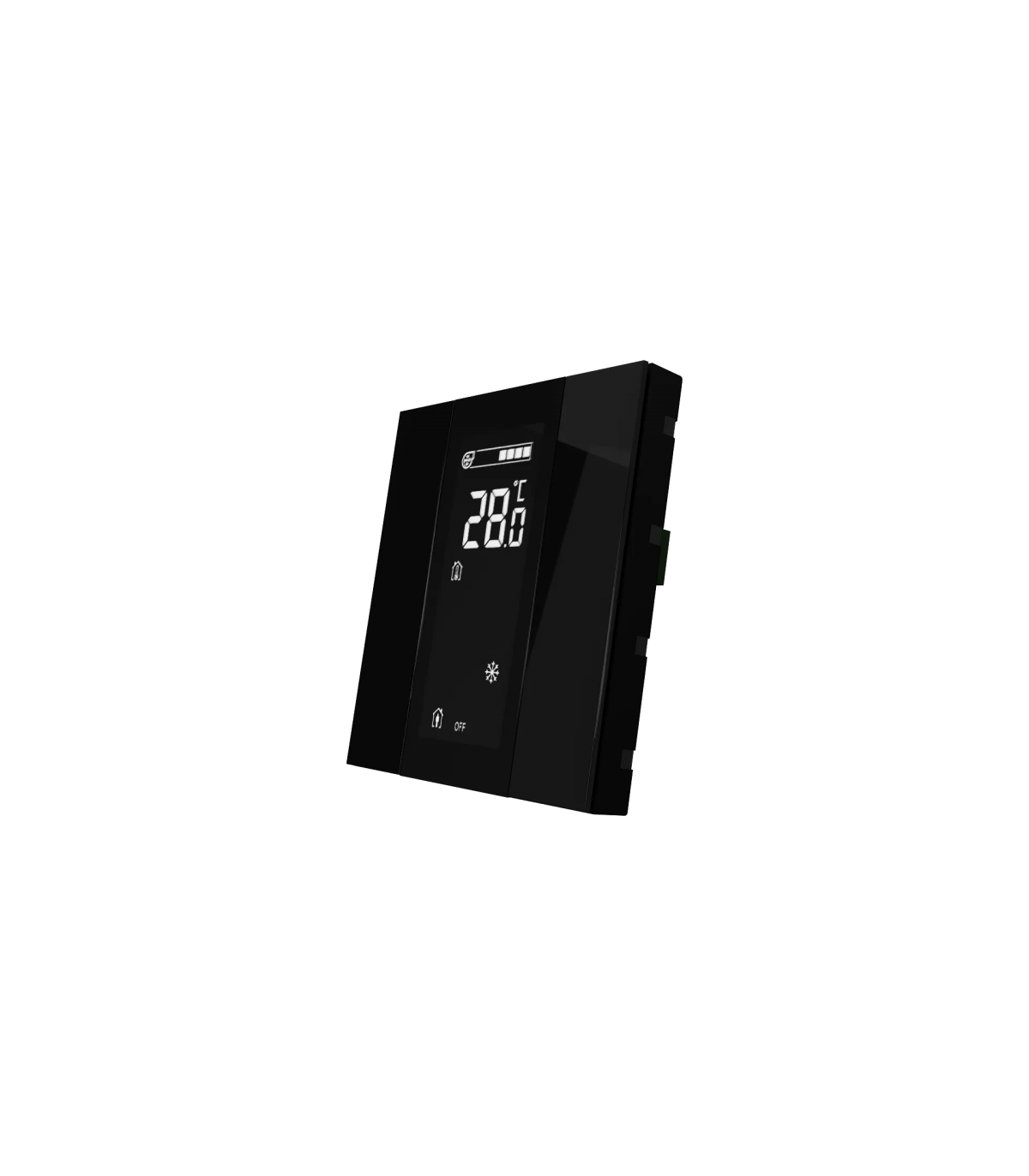 Fiecare buton este echipat cu LED-uri RGB cu intensitate luminoasa reglabila in combinatii de culori albastru/verde sau alb/rosu pentru feedback sau vizualizare, iar modelele LCD sunt echipate cu tehnologia VA-Display. Există 2 butoane ascunse cu apăsare scurtă și evenimente de apăsare lungă, situate în sus și în jos sub cadrul ecranului LCD, făcându-l un dispozitiv unic pentru a controla toate funcțiile termostatului prin butoanele LCD. Oferă o mare flexibilitate a proiectului, astfel încât alte butoane pot fi aranjate pentru alte comenzi.