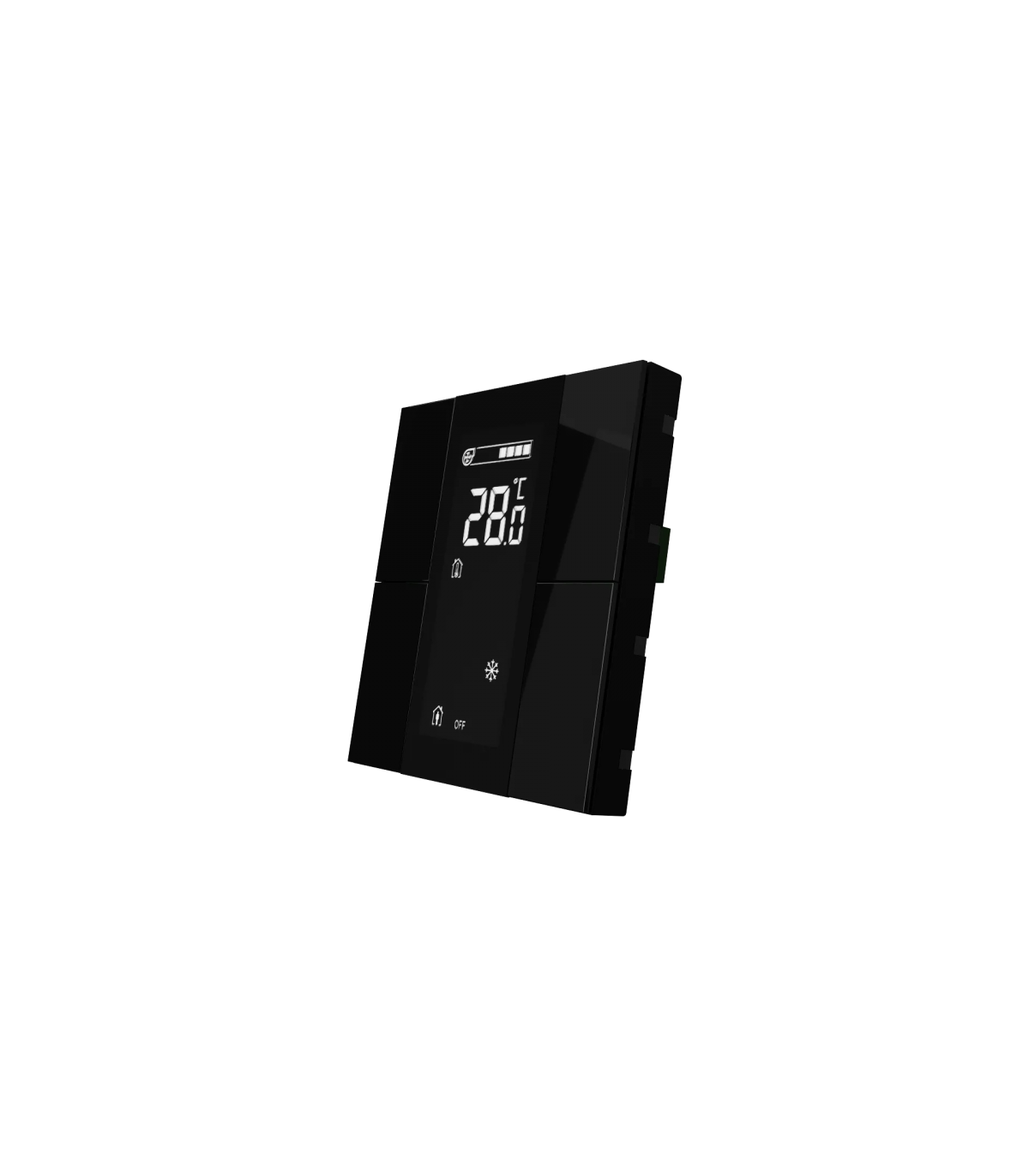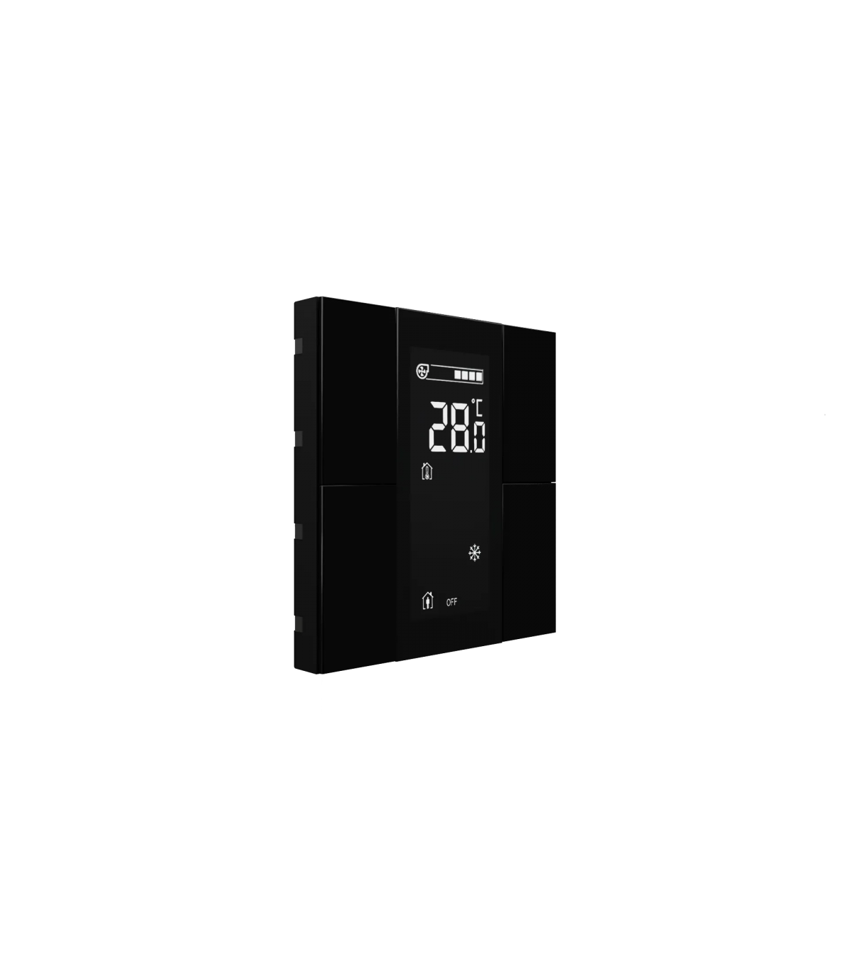 Fiecare buton este echipat cu LED-uri RGB cu intensitate luminoasa reglabila in combinatii de culori albastru/verde sau alb/rosu pentru feedback sau vizualizare, iar modelele LCD sunt echipate cu tehnologia VA-Display. Există 2 butoane ascunse cu apăsare scurtă și evenimente de apăsare lungă, situate în sus și în jos sub cadrul ecranului LCD, făcându-l un dispozitiv unic pentru a controla toate funcțiile termostatului prin butoanele LCD. Oferă o mare flexibilitate a proiectului, astfel încât alte butoane pot fi aranjate pentru alte comenzi.
