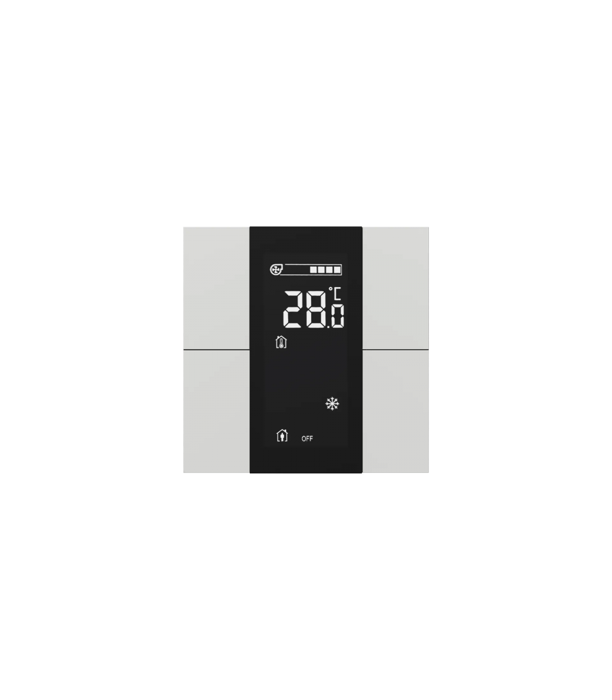 Fiecare buton este echipat cu LED-uri RGB cu intensitate luminoasa reglabila in combinatii de culori albastru/verde sau alb/rosu pentru feedback sau vizualizare, iar modelele LCD sunt echipate cu tehnologia VA-Display. Există 2 butoane ascunse cu apăsare scurtă și evenimente de apăsare lungă, situate în sus și în jos sub cadrul ecranului LCD, făcându-l un dispozitiv unic pentru a controla toate funcțiile termostatului prin butoanele LCD. Oferă o mare flexibilitate a proiectului, astfel încât alte butoane pot fi aranjate pentru alte comenzi.