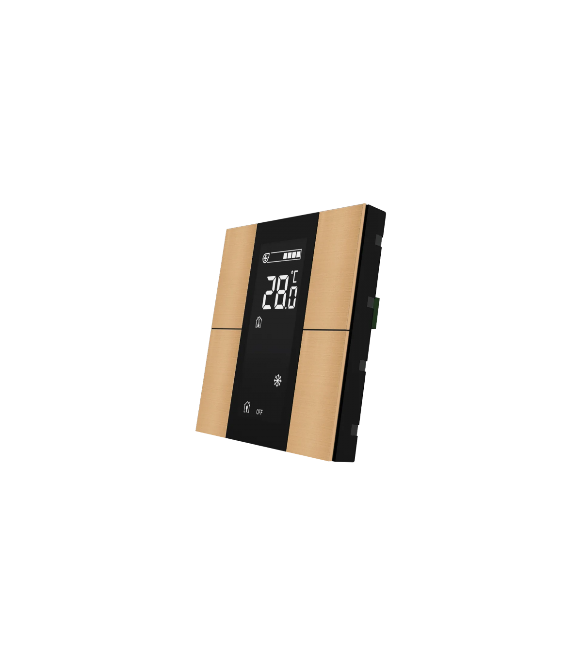 Fiecare buton este echipat cu LED-uri RGB cu intensitate luminoasa reglabila in combinatii de culori albastru/verde sau alb/rosu pentru feedback sau vizualizare, iar modelele LCD sunt echipate cu tehnologia VA-Display. Există 2 butoane ascunse cu apăsare scurtă și evenimente de apăsare lungă, situate în sus și în jos sub cadrul ecranului LCD, făcându-l un dispozitiv unic pentru a controla toate funcțiile termostatului prin butoanele LCD. Oferă o mare flexibilitate a proiectului, astfel încât alte butoane pot fi aranjate pentru alte comenzi.