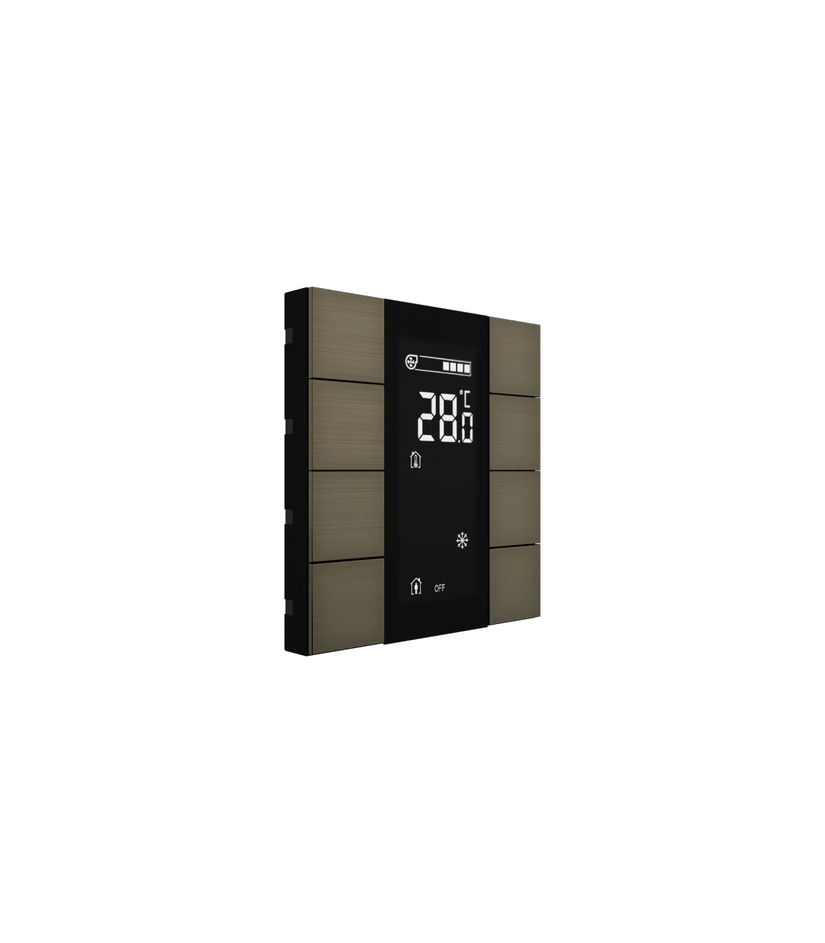 Fiecare buton este echipat cu LED-uri RGB cu intensitate luminoasa reglabila in combinatii de culori albastru/verde sau alb/rosu pentru feedback sau vizualizare, iar modelele LCD sunt echipate cu tehnologia VA-Display. Există 2 butoane ascunse cu apăsare scurtă și evenimente de apăsare lungă, situate în sus și în jos sub cadrul ecranului LCD, făcându-l un dispozitiv unic pentru a controla toate funcțiile termostatului prin butoanele LCD. Oferă o mare flexibilitate a proiectului, astfel încât alte butoane pot fi aranjate pentru alte comenzi.