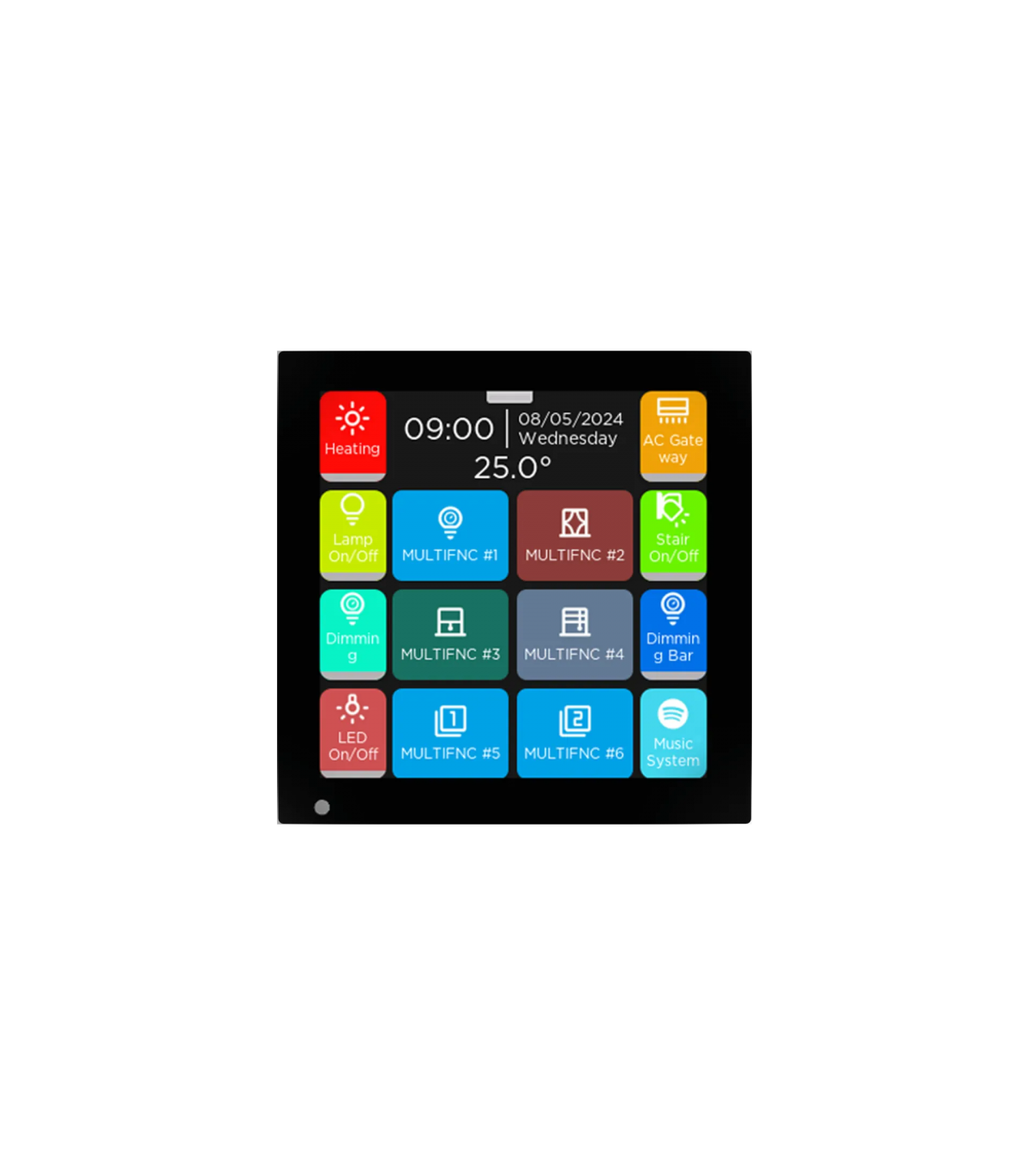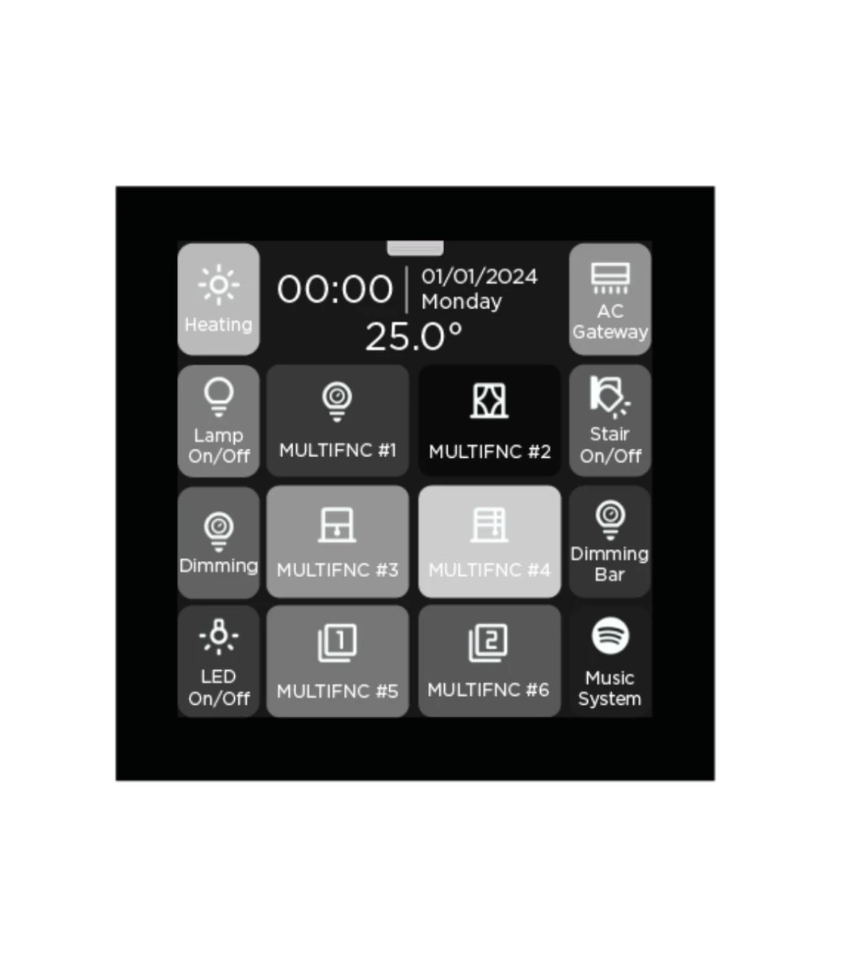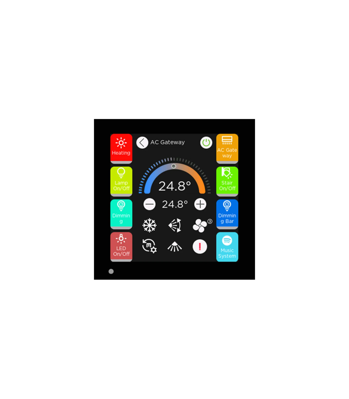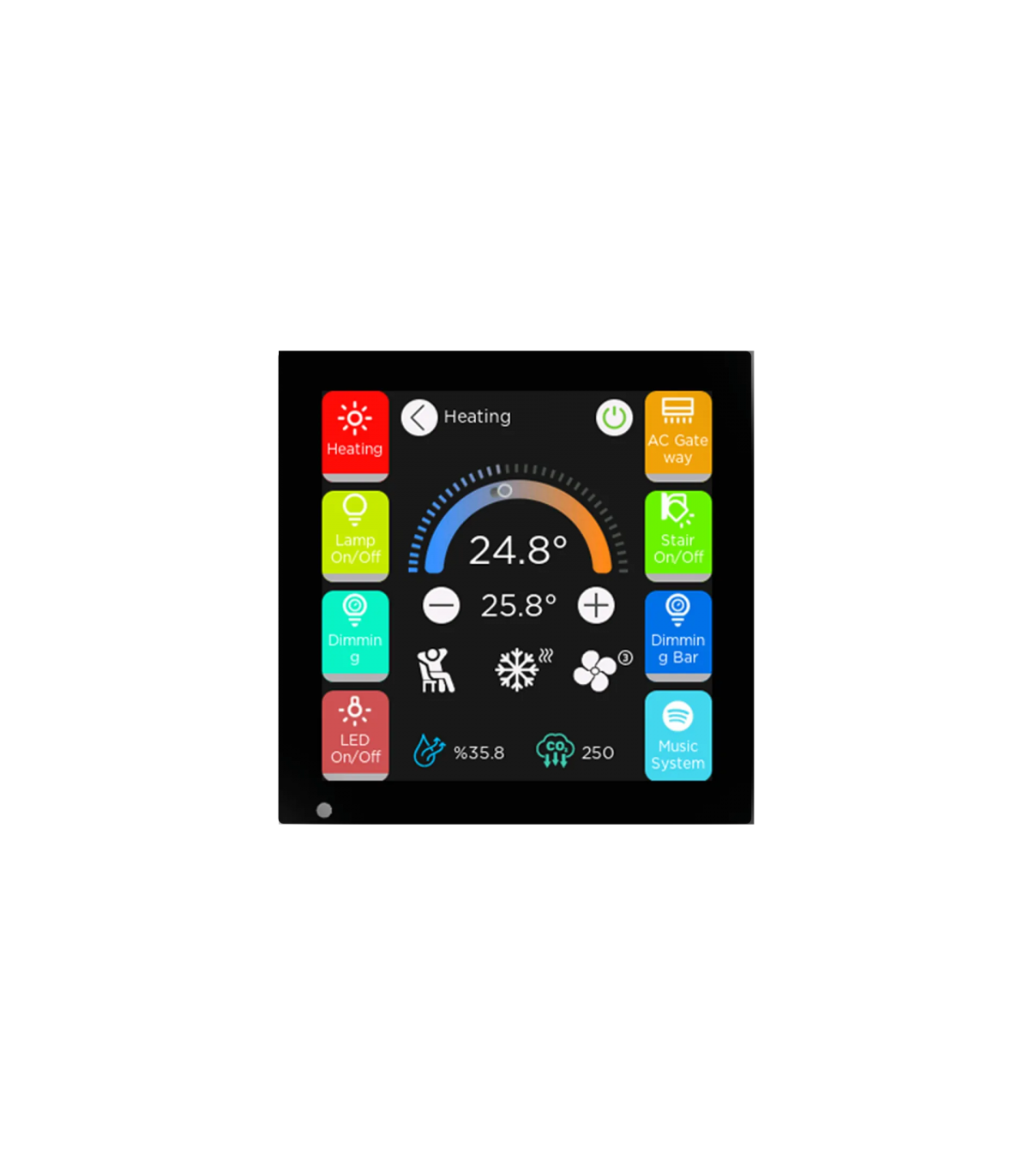 Interra iX3 este un dispozitiv de control de cameră montat pe perete cu un senzor integrat de temperatură, umiditate, luminozitate și calitate a aerului. iX3 poate fi operat ușor și clar prin interfața de control.
