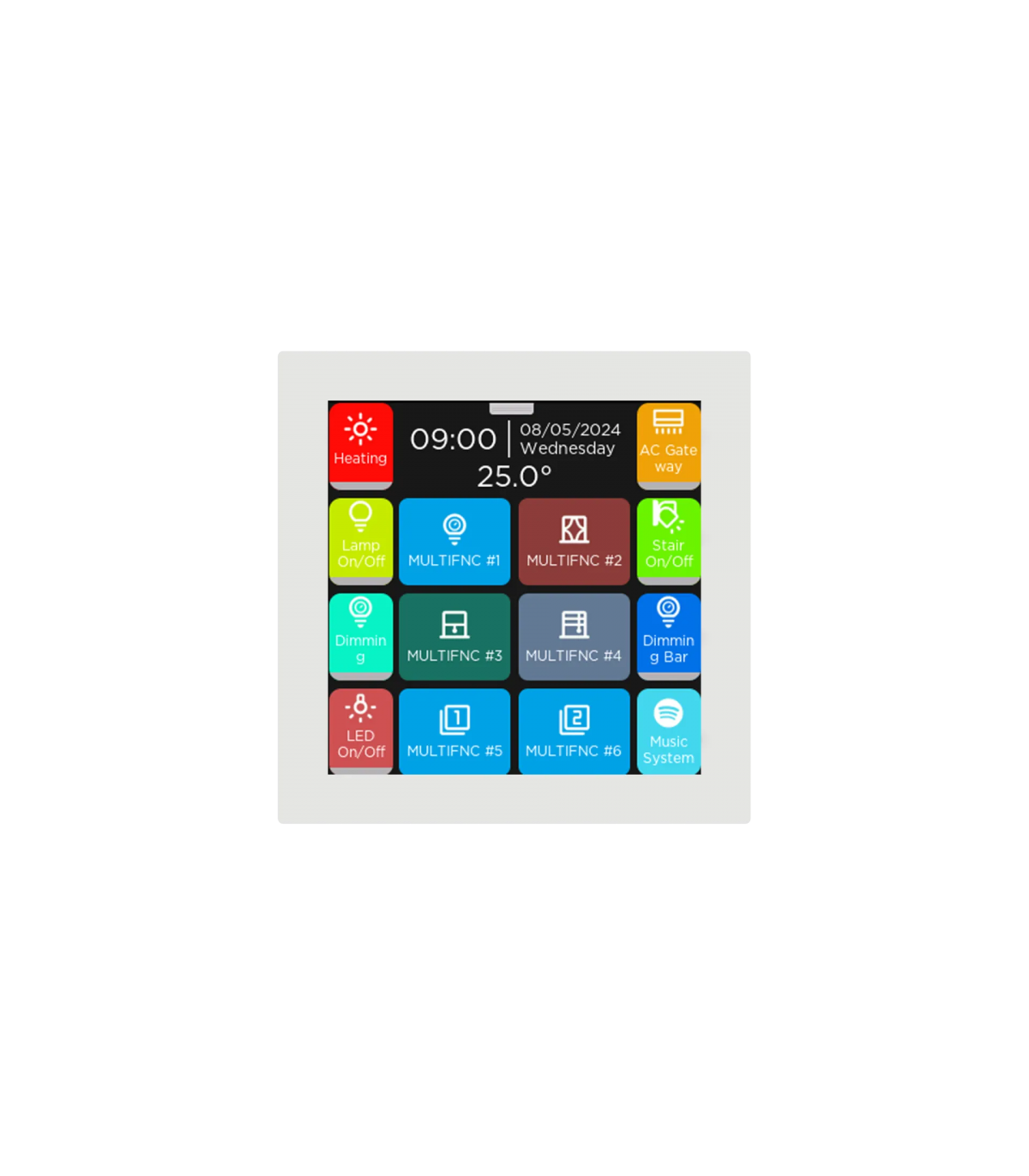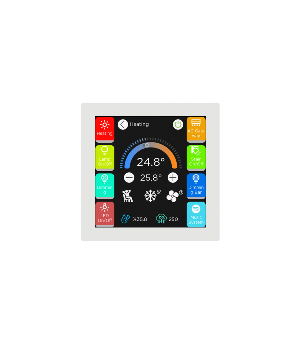 Interra iX3 este un dispozitiv de control de cameră montat pe perete cu un senzor integrat de temperatură, umiditate, luminozitate și calitate a aerului. iX3 poate fi operat ușor și clar prin interfața de control.