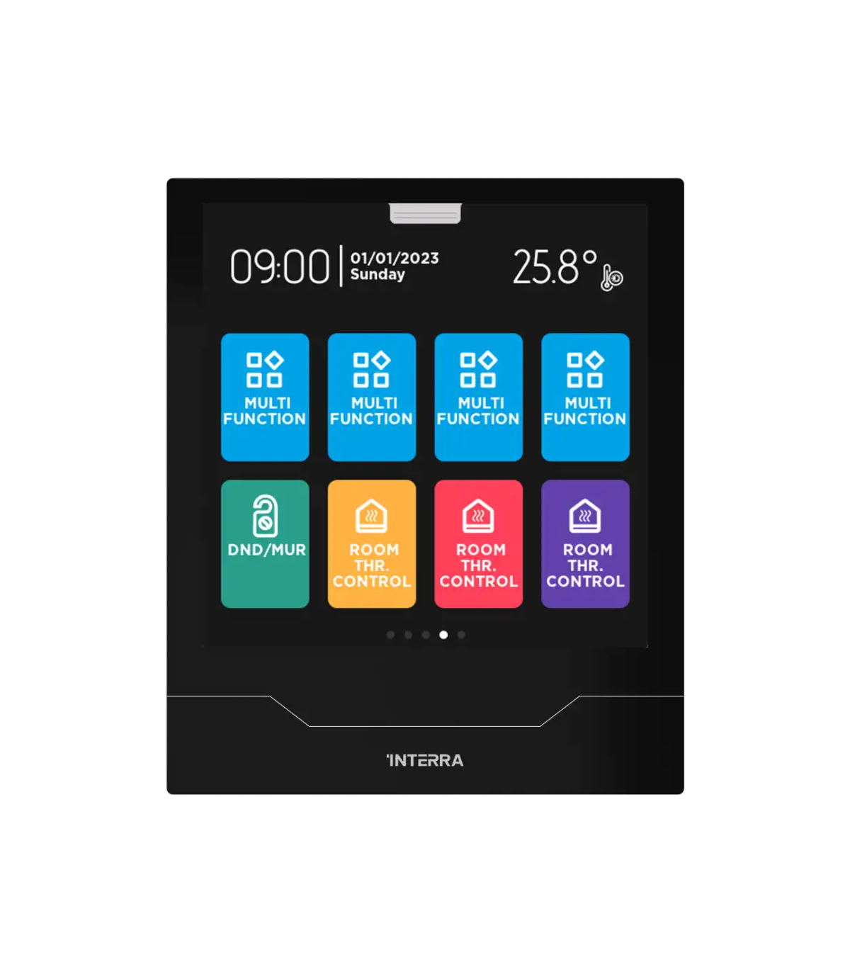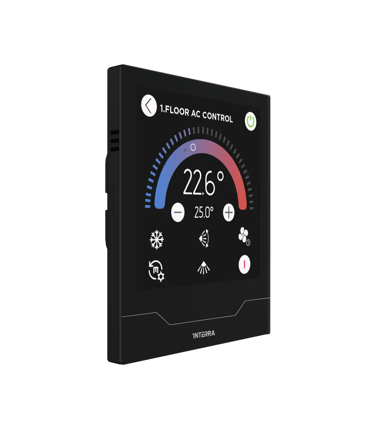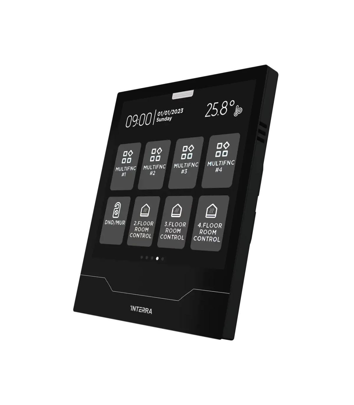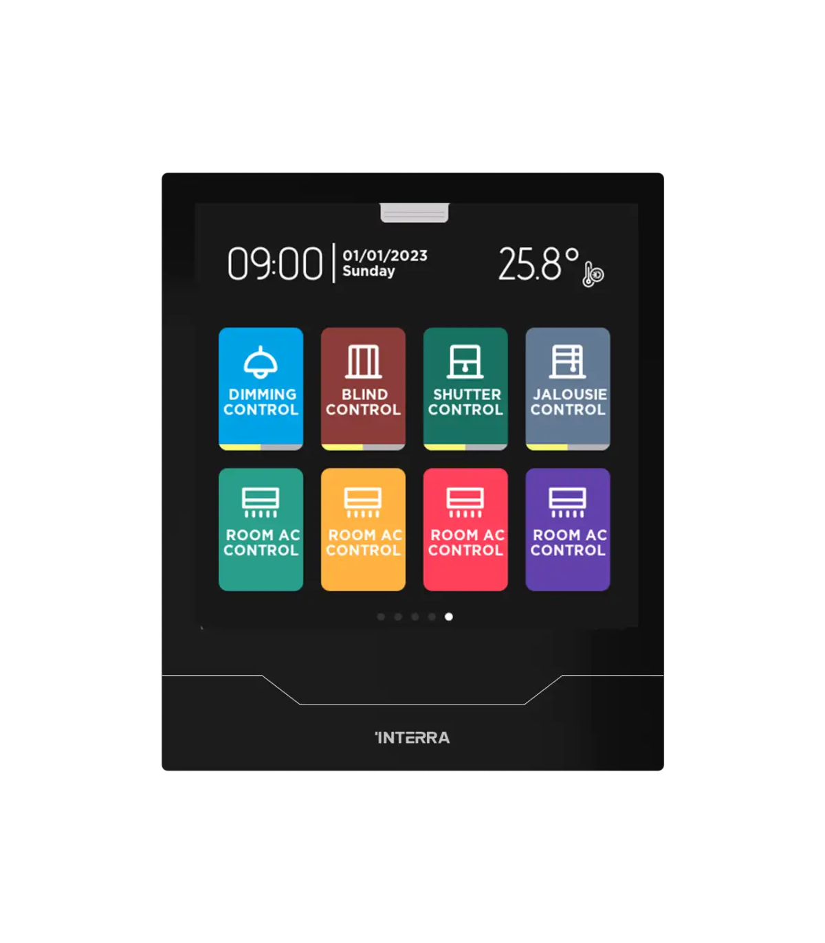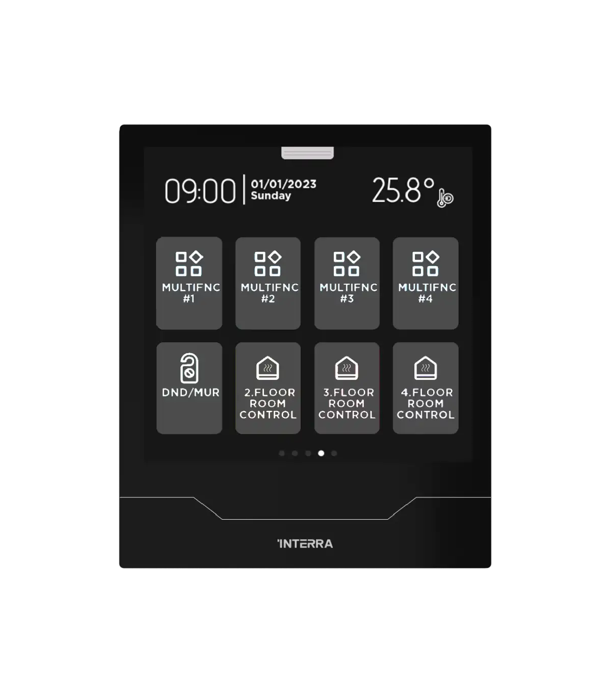 Noul panou tactil KNX de 4” este un mini panou inteligent personalizat de generație următoare care oferă o mare flexibilitate în controlul camerei și design arhitectural, oferind soluții eficiente pentru aplicații rezidențiale sau comerciale. Interfața ușor de utilizat și personalizabilă (1x2, 1x4, 2x4) simplifică controlul clădirilor inteligente și elimină complexitatea vieții tale. Toate paginile și culorile pot fi personalizate în funcție de nevoile dumneavoastră. Interra iX4 gestionează toate funcțiile necesare automatizării clădirilor cu pagini speciale pentru fiecare sarcină, inclusiv controlul muzicii, comutarea, reglarea luminii, iluminarea albă reglabilă, controlul RGBW, jaluzelele și jaluzele, controlul termostatului, controlul aerului condiționat, controlul încălzirii în pardoseală, scenarii cu temporizator, monitorizarea energiei și a calității aerului.