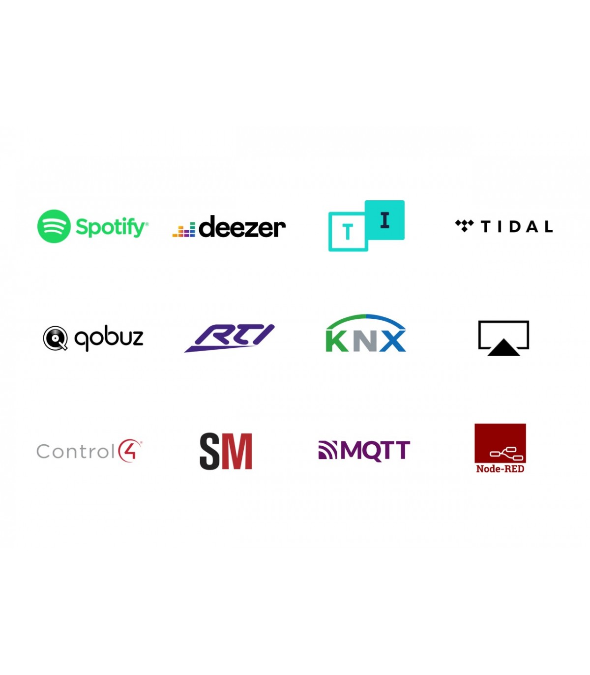 Player flexibil pentru 4 zone cu amplificatoare externe: sistem de streaming pentru AirPlay, SpotifyConnect și alte servicii. Poate fi combinat cu până la 64 de zone. Ieșiri analogice și digitale Inclusiv KNX și alte funcții.