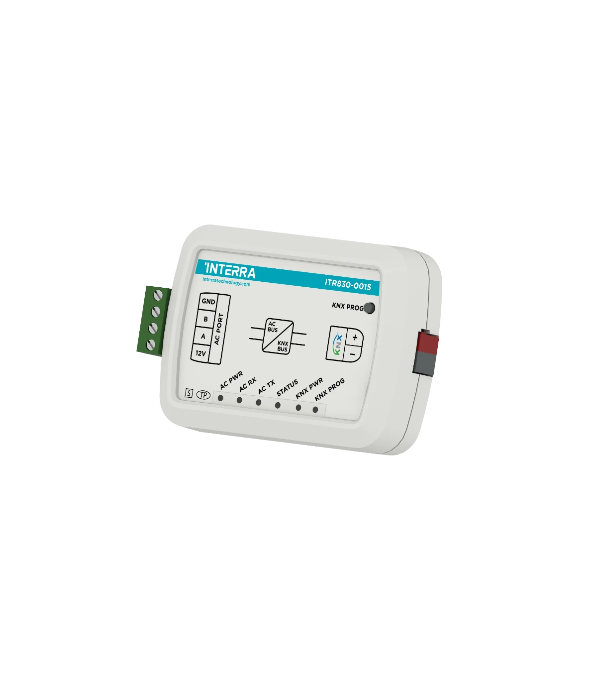ITR830-0015 este un gateway de aer condiționat utilizat pentru monitorizarea și controlul tuturor parametrilor de funcționare ai aparatelor de aer condiționat Viessman prin intermediul liniei de comunicatie KNX. Viessman Split AC - KNX Gateway este compatibil cu modelele în tipuri split clasificate pe lista de compatibilitate vândută de Interra. Viessman Split AC - KNX Gateway are o caracteristică de instalare ușoară și poate fi instalat în interiorul propriei unități interioare AC sau într-o locație adecvată departe de aparatul de aer condiționat, se conectează pe o parte direct la circuitul electronic al unității interioare AC și pe cealaltă parte direct la magistrala KNX.